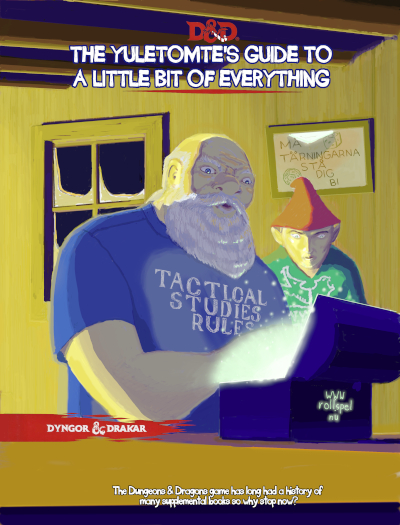 THE YULETOMTE'S GUIDE TO A LITTLE BIT OF EVERYTHING Denna guide är en samlingsvolym med blandat fantasymaterial, några med D&D-kopplingar och andra utan. Här hittar du regler för kärlek, spelledarpersoner, äventyrsfrön, monster, ny utrustning med mera. THE YULETOMTE'S GUIDE TO A LITTLE BIT OF EVERYTHING PDF 112 sidor, illustrerad Fantasy Utbrytna artiklar: Uppdaterad: 2021-12-23 Planerade uppdateringar: Inga. Alla uppdateringar hamnar i den engelska versionen. |