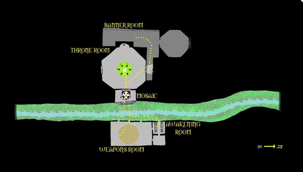 Karta över Det första testets grotta.